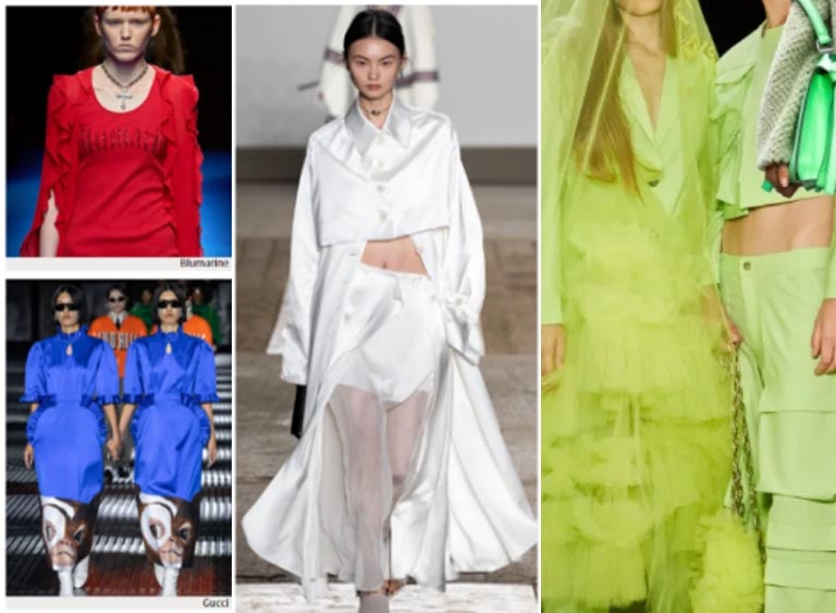 This season, gemstone bright, fluorescent, persimmon color as the key bright colors, add vitality to the summer attire, oyster mushroom gray, cappuccino and other neutral colors and classic black and white blend, add retro elegance to business casual or modern pieces.