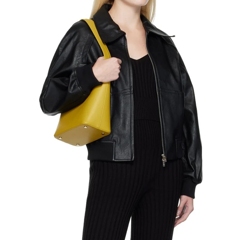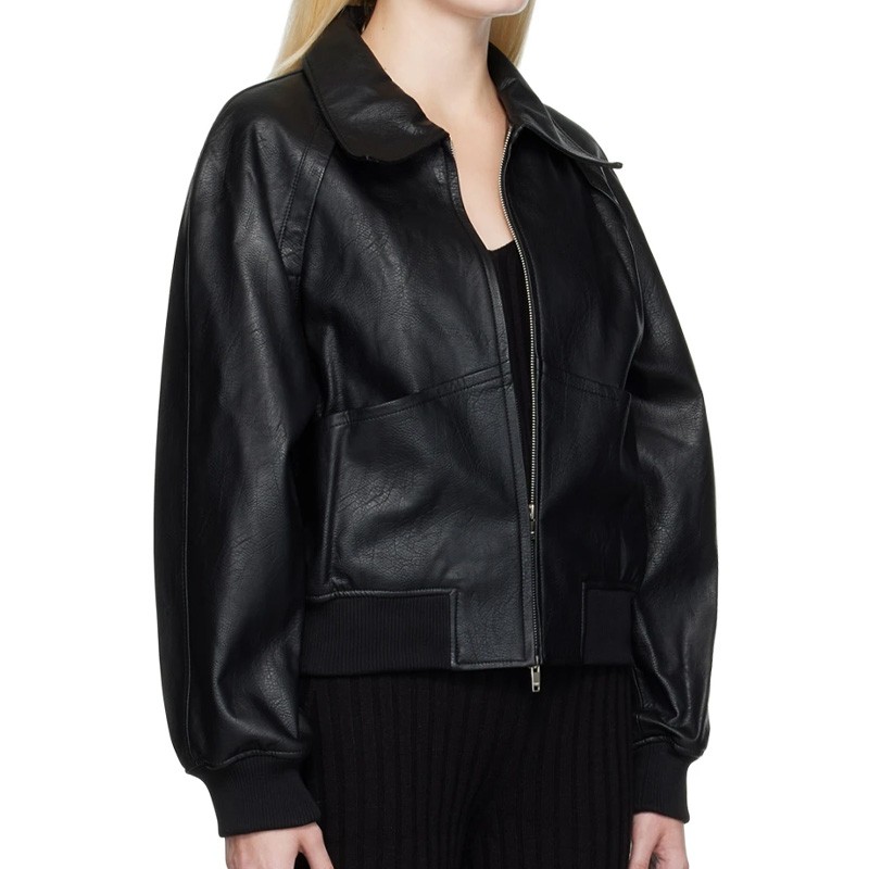 Spring Coats 2021 Lady Black Leather Cool Simple Long Sleeve Puffer Jacket
