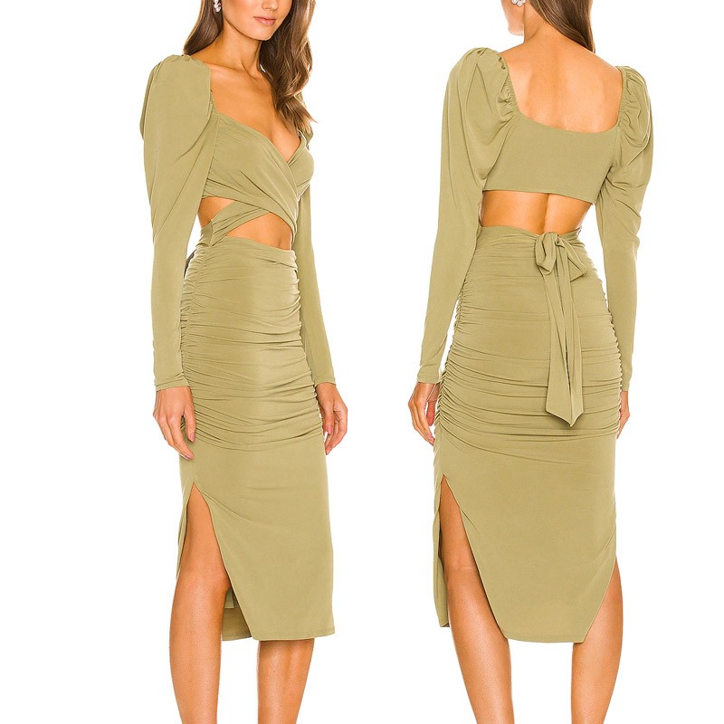 Sexy Bodycon Pleated Midi Dress For Women Sexy Bodycon Pleated Midi Dress For Women