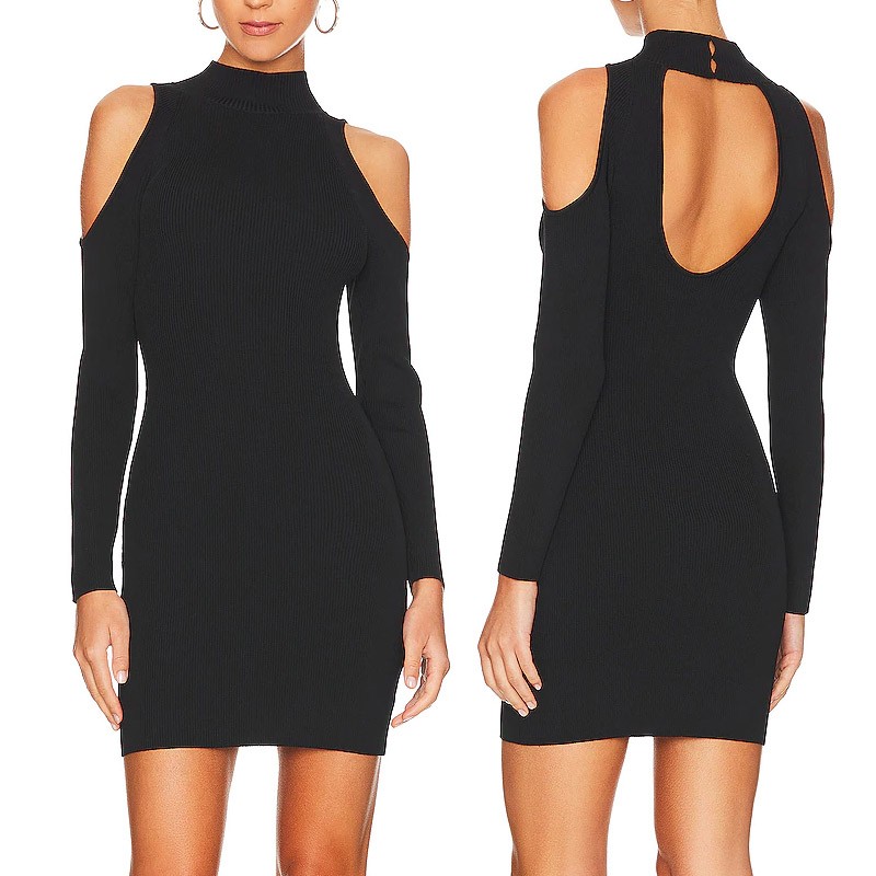 Fashion Back Hollow Out Long Sleeve Express Bodycon Knit Mini Dresses