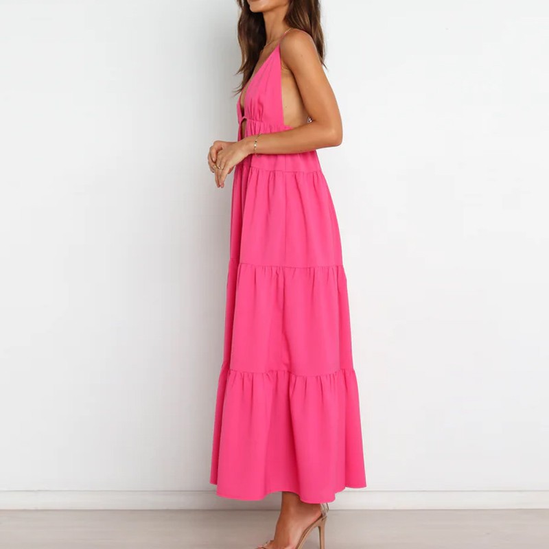 Summer Casual Sexy Deep V Neck Backless Going Out Beach Maxi Dresses