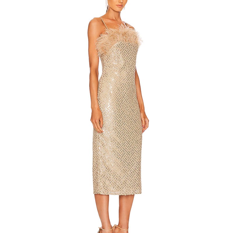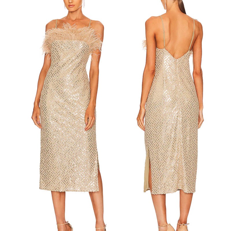 Lady Fashion Neckline Feather Ornament Graduation Holiday Sequin Midi Dresses