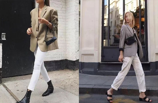But with the suit jacket, it will make people feel that the person is elegant and calm, the two styles complement each other, the collision of the elegance of the female tough and the intellectuality of the charm.