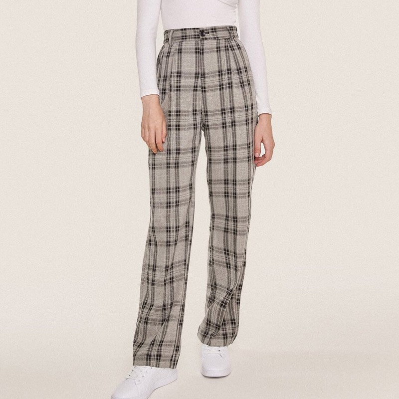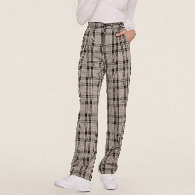 Ladies Fashion Straight Plaid Lounge Long Pants