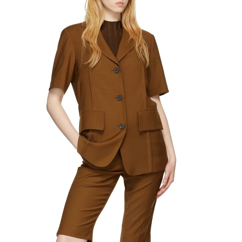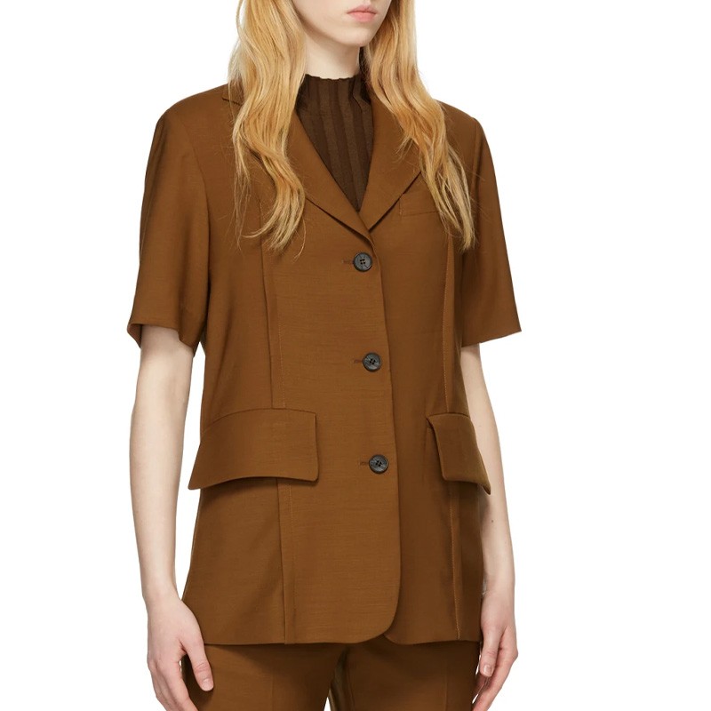 Ladies Brown Simple Casual Single-Breasted Shirt Suit Coat Jacket