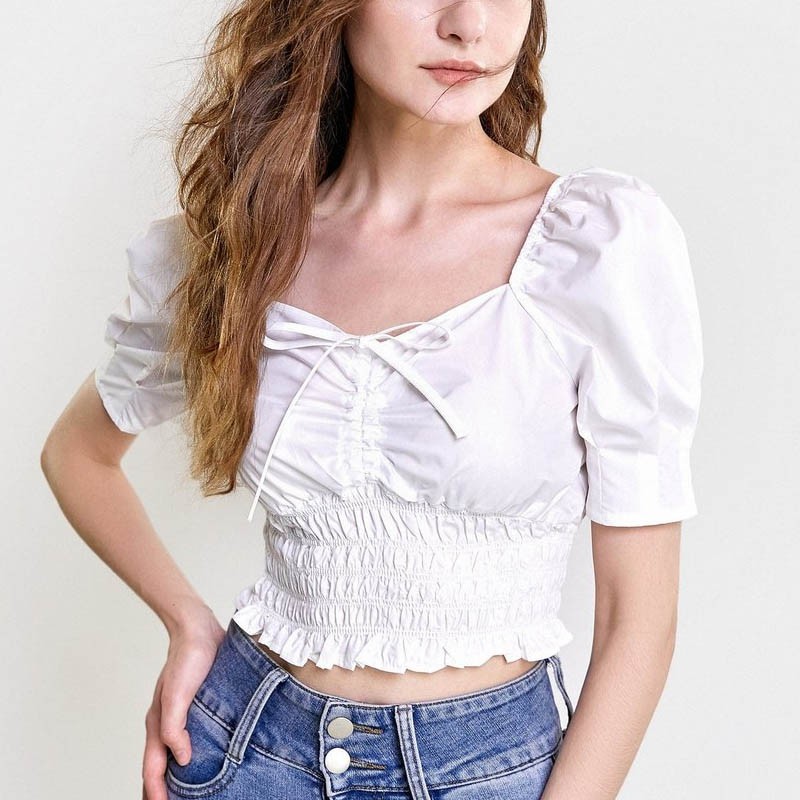 Neckline: Square Collar Season: Spring / Autumn Blouse Length: Short Fashion Element: Simple