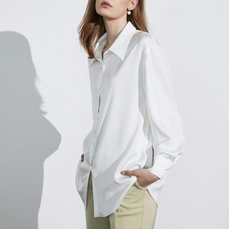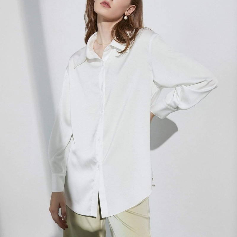 Spring / Autumn Long Sleeve Satin White Shirts