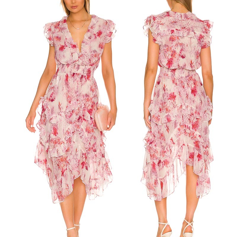 Summer Fashion Ruffle V Neck Beam Waist Modern Aesthetic Dress