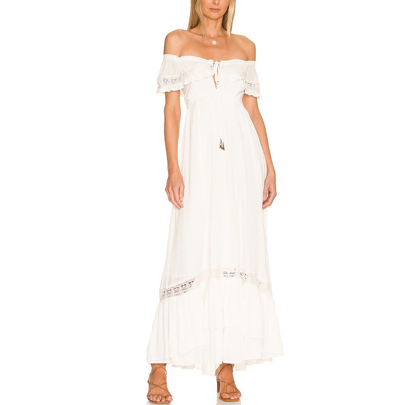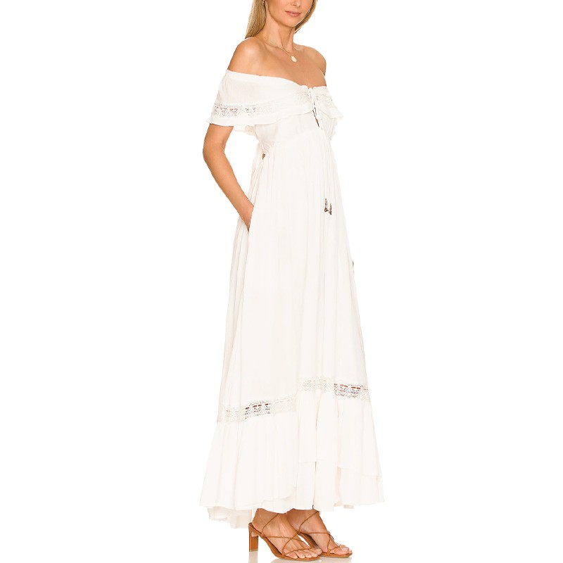 Elegant Off Shoulder Neckline Lace-up A-Line Monochrome Maxi Dress