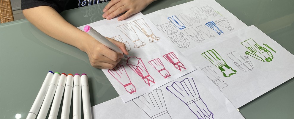 Professional team includes garment designers, Graphic designer, technical pack, pattern makers, print/embroidery/embossed artwork designer, accessories designer all in one or separately.