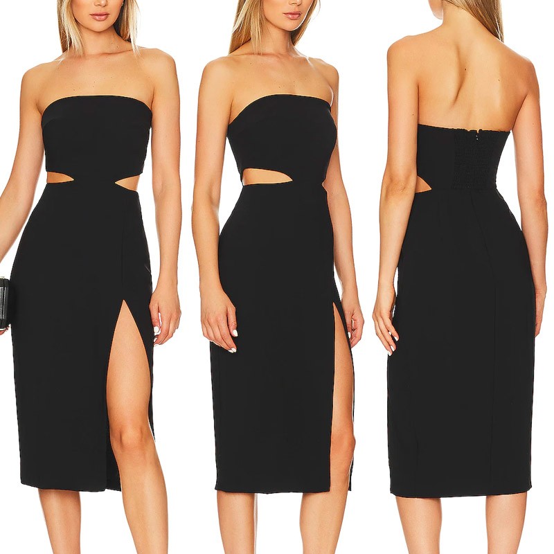 Sexy Strapless Waist Cut Out Side High Slit Party Western Midi Dresses