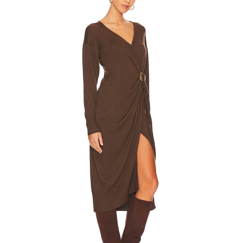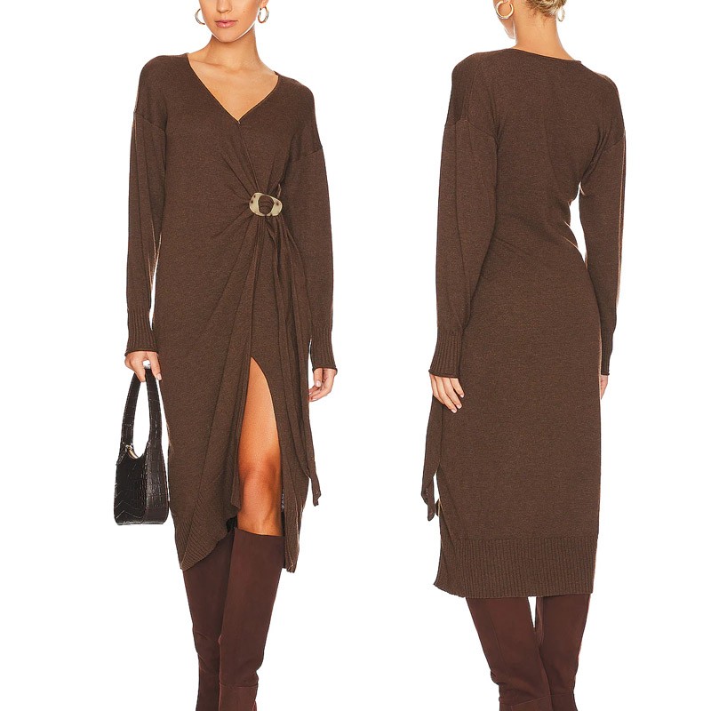 Spring Fall Fashion V Neck Casual Long Sleeve Knit Caftan Dresses