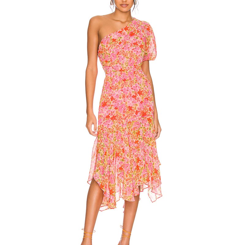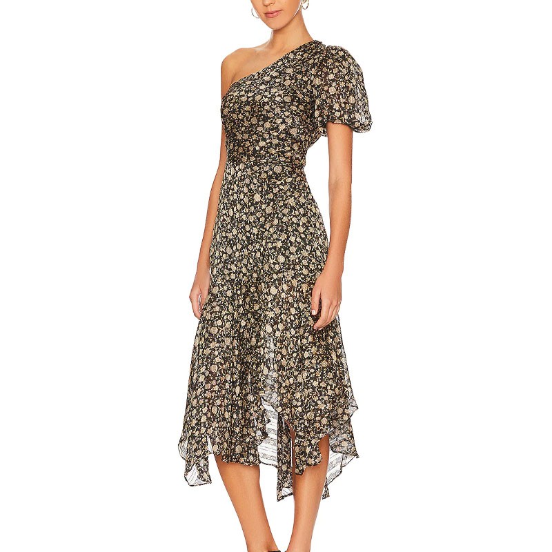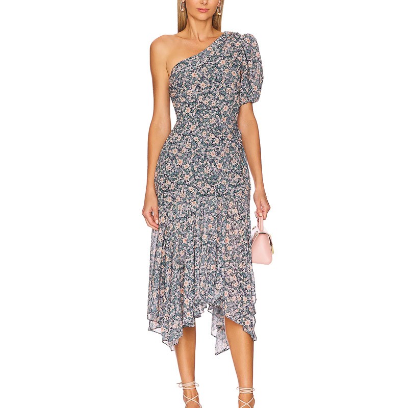 Summer One Shoulder Puff Sleeve Asymmetrical Hem Design Style Fitted Dresses