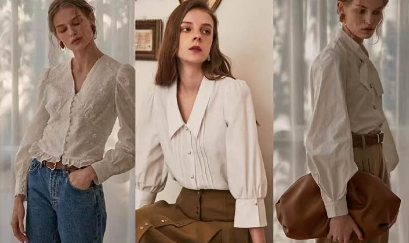 French ribbon shirt, break the simple base shirt, let wear with more emotional appeal and interest. Lace shirt, exquisite lace print, pure and sweet. Printed shirts are vintage and elegant, chiffon shirts are feminine.