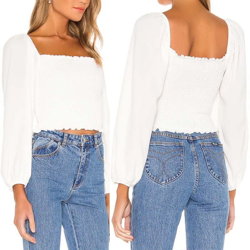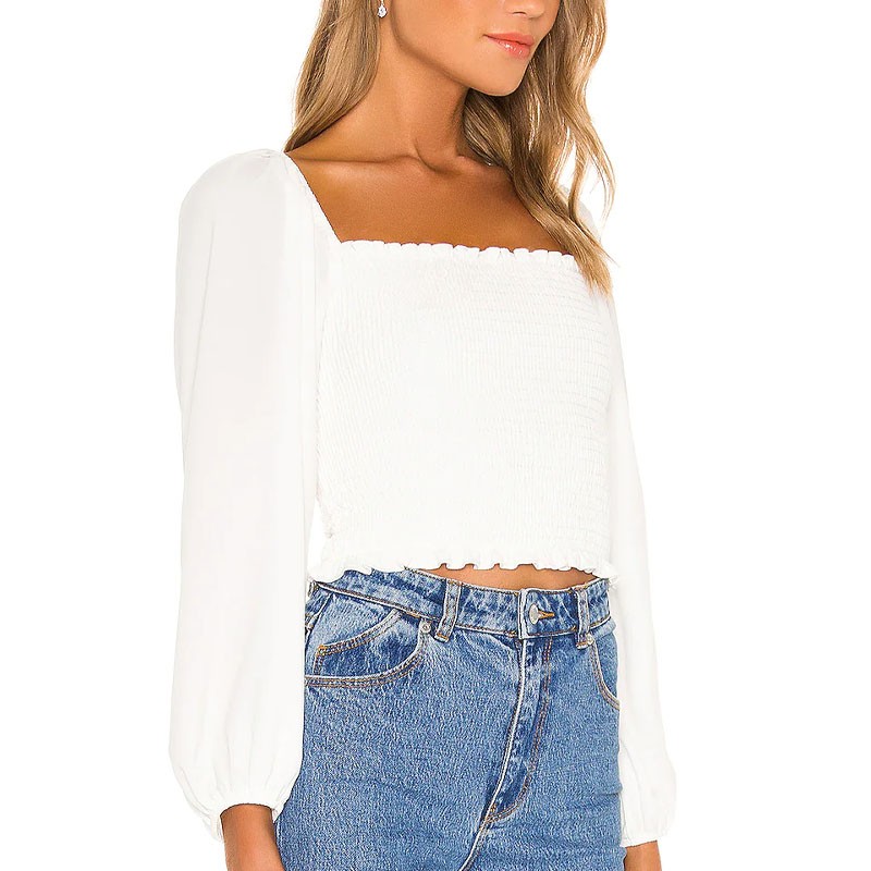 White Long Sleeve Simple Solid Color Blouse & Tops