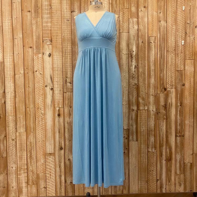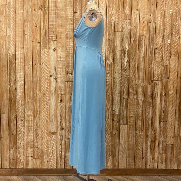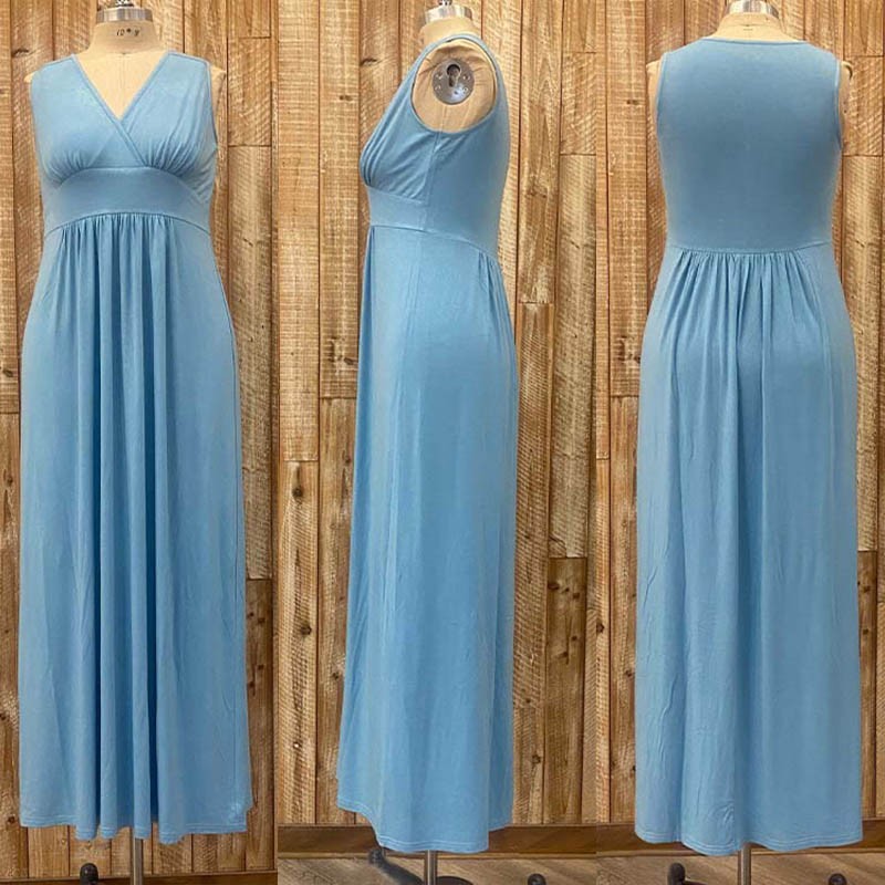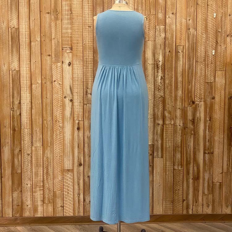 Women Summer Fashion Casual Sleeveless V-Neck Simple Knit Maxi Dresses.